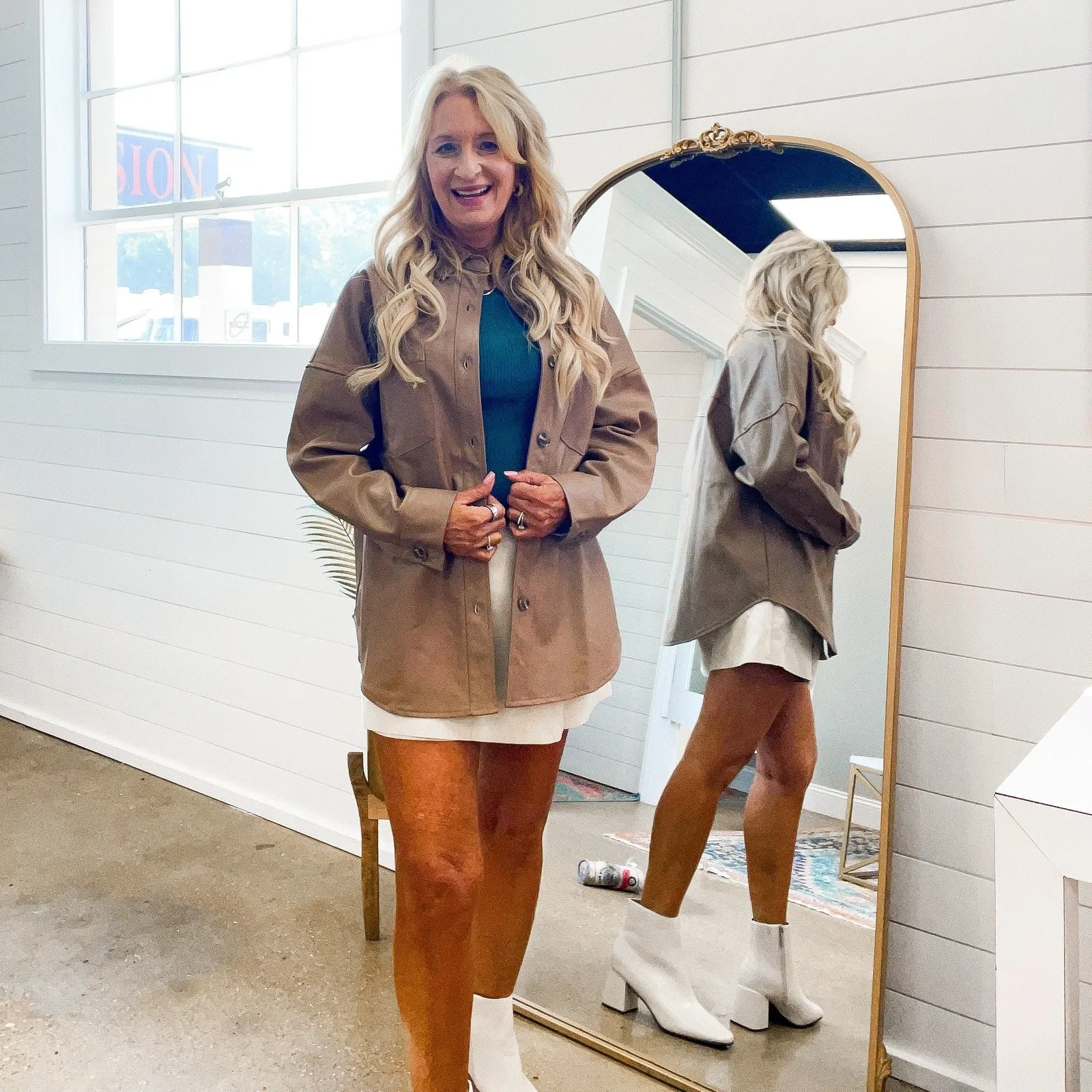 Look no further - the Bailey Faux Leather Shacket has you covered! This stylish shacket is the perfect combination of a shirt and a jacket - with a button up front and long sleeves with button cuffs, you'll be turning heads! Stay comfortable (and cool!) all day long.